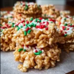 What makes these cookies especially appealing is their balance of textures and flavors. The crispy rice cereal provides a light, airy crunch. Creamy peanut butter adds richness and depth. White chocolate brings sweetness and a smooth, melt-in-your-mouth finish. Finally, red and green holiday sprinkles add color, cheer, and a celebratory touch that instantly signals “Christmas.”
