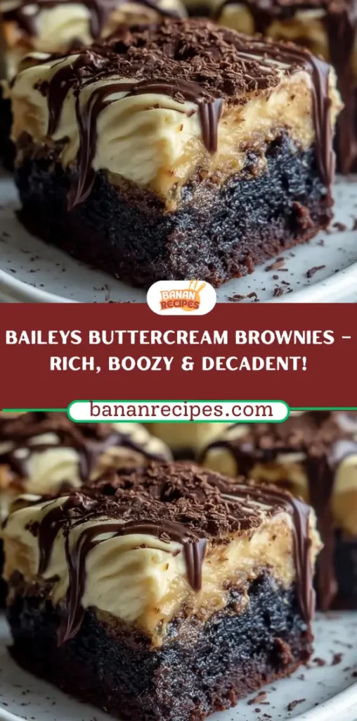 Baileys Buttercream Brownies are a decadent, indulgent dessert that combines fudgy brownie layers with creamy, boozy buttercream and silky chocolate ganache. This recipe is perfect for entertaining, gifting, or treating yourself. Easy to make, customizable, and delicious, these brownies are sure to impress anyone with a love for chocolate and Irish cream.