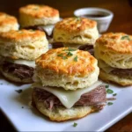This recipe takes everything people love about the traditional French dip sandwich and reimagines it in an easy-to-make, crowd-pleasing format. Using refrigerated biscuit dough as the base, each biscuit is stuffed with thinly sliced roast beef and provolone cheese, brushed with melted butter, and baked until beautifully golden. Served alongside a warm cup of au jus for dipping, these biscuits are irresistible from the first bite.