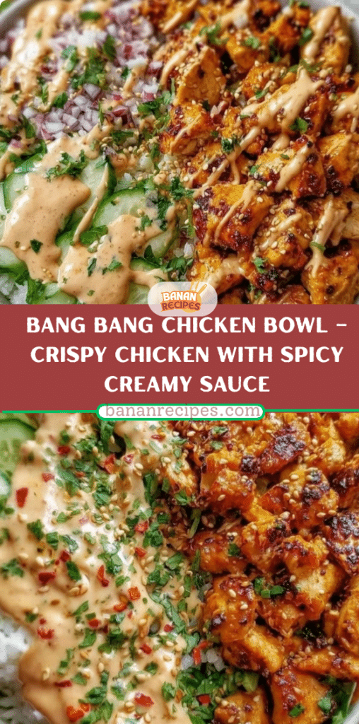 The Bang Bang Chicken Bowl is a bold, satisfying meal that proves quick dinners don’t have to be boring. With crispy chicken, creamy-spicy sauce, fluffy rice, and fresh vegetables, it delivers comfort, balance, and flavor in every bite.