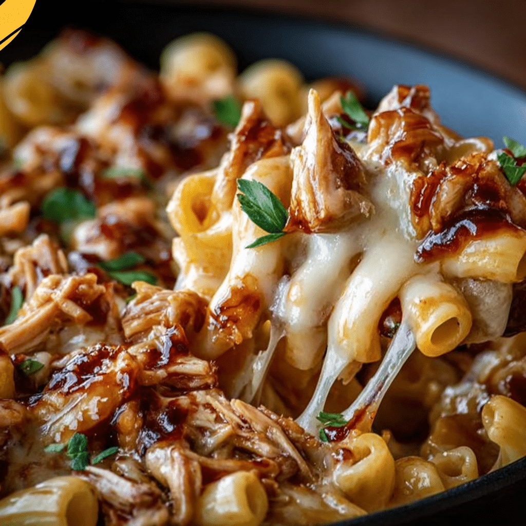 A creamy, cheesy mac and cheese combined with savory BBQ chicken for a comforting, crowd-pleasing meal.