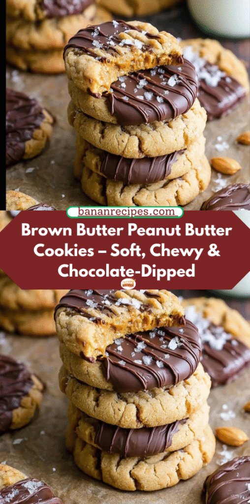 Soft, chewy, and irresistibly rich, these Brown Butter Peanut Butter Cookies take classic peanut butter cookies to a whole new level. The nutty depth of browned butter pairs perfectly with creamy peanut butter, while a dip in smooth melted chocolate and a sprinkle of flaky sea salt creates the ultimate sweet-and-salty finish. They’re bakery-style, impressive, and surprisingly easy to make at home.