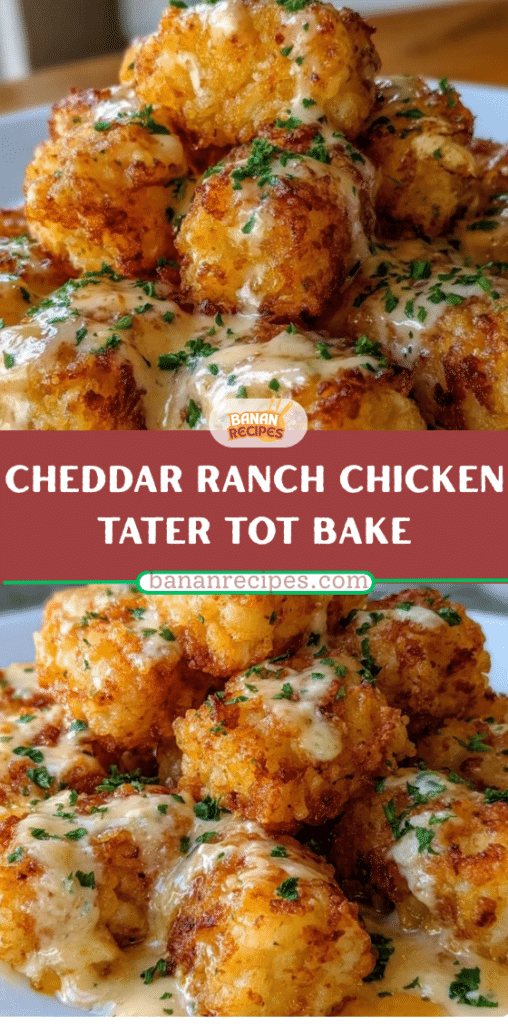 Cheddar Ranch Chicken Tater Tot Bake is the ultimate comfort food: hearty, cheesy, and satisfying with minimal effort. Its crispy tater tot topping, tender chicken filling, and creamy ranch flavor make it a guaranteed crowd-pleaser. Perfect for family dinners, potlucks, or any time you need a filling, easy meal.