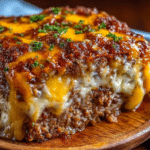This Cheesy Meatloaf Casserole is a hearty, comforting dish made with juicy ground beef, savory seasonings, and topped with melted cheese for the perfect family dinner.