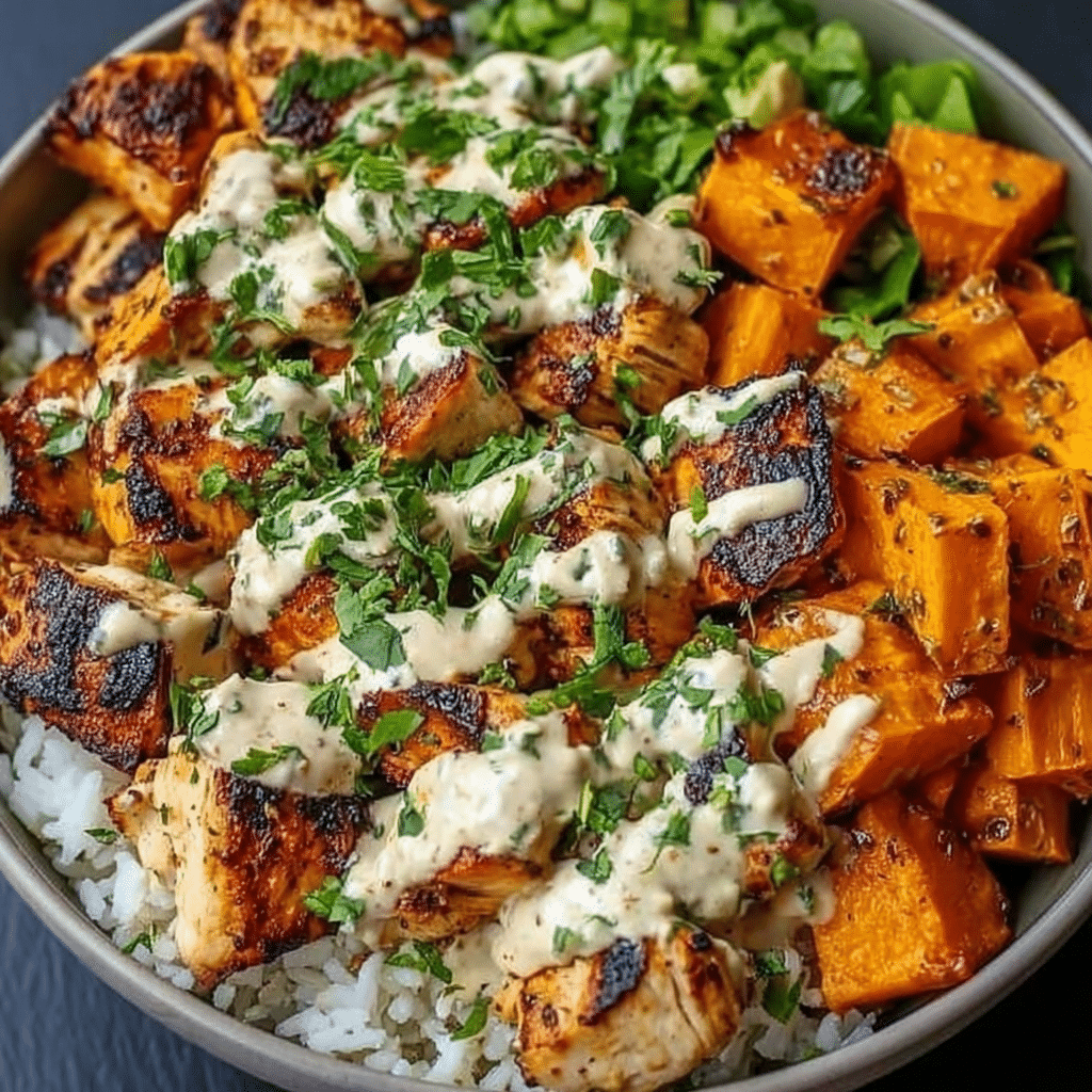 These Chicken and Sweet Potato Bowls are a balanced, colorful, and flavorful meal that’s perfect for weeknight dinners or meal prep. With tender chicken, sweet roasted potatoes, green vegetables, and a zesty creamy sauce, this dish is both comforting and healthy.
