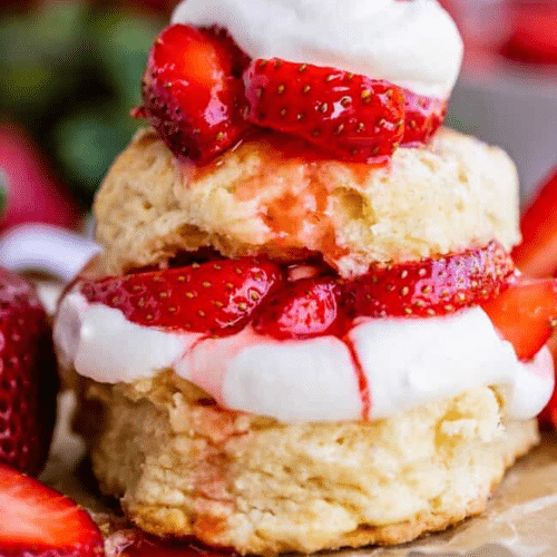 Thick, flaky shortcakes layered with fresh strawberries and whipped cream — just like grandma used to make. A timeless dessert perfect for any occasion.