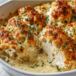 - Bake uncovered for 30–35 minutes, until chicken reaches 165°F (74°C) and sauce is bubbling with light golden spots.