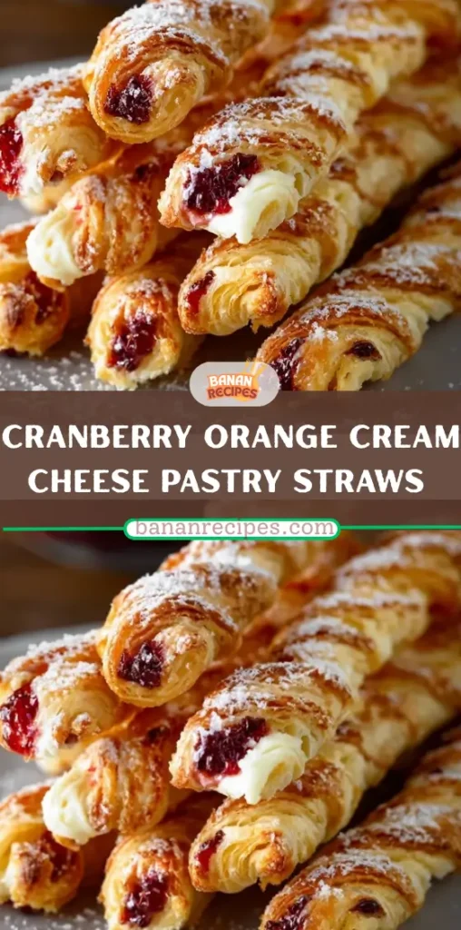 Cranberry Orange Cream Cheese Pastry Straws are a delightful combination of simplicity and elegance. With flaky puff pastry, a creamy fruit-filled center, and bright citrus notes, they offer a dessert that feels festive without being complicated. This recipe is ideal for holidays, brunches, or any occasion where you want something visually appealing and delicious with minimal effort.