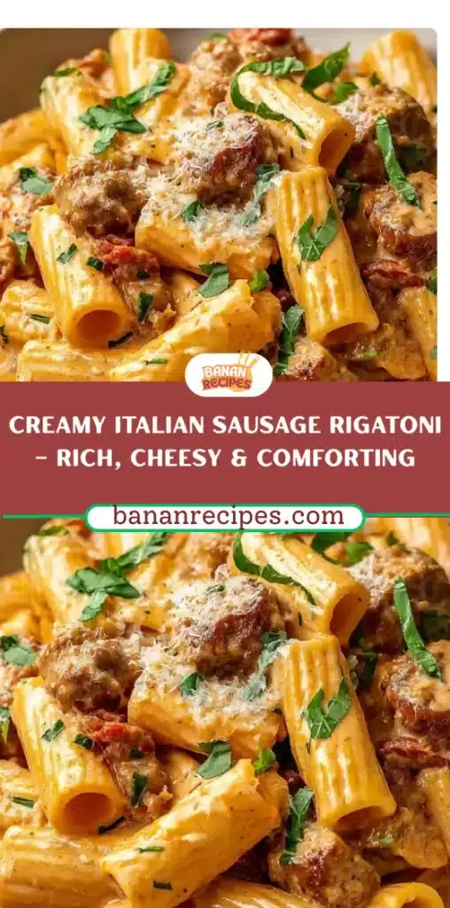 Creamy Italian Sausage Rigatoni is a perfect marriage of comfort food and Italian elegance. With just a few ingredients, you can prepare a rich, flavorful meal that’s perfect for both weeknight dinners and special occasions. Its creamy sauce, savory sausage, and tender rigatoni make it a satisfying choice for anyone who loves hearty pasta dishes.