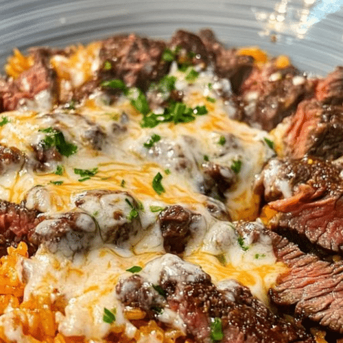 Creamy Queso Rice with Juicy Steak Strips is a rich and satisfying meal that combines bold spices, tender steak, and velvety cheese sauce in one comforting dish. The creamy rice base absorbs the savory flavors perfectly, while the steak adds a hearty, protein-packed topping.