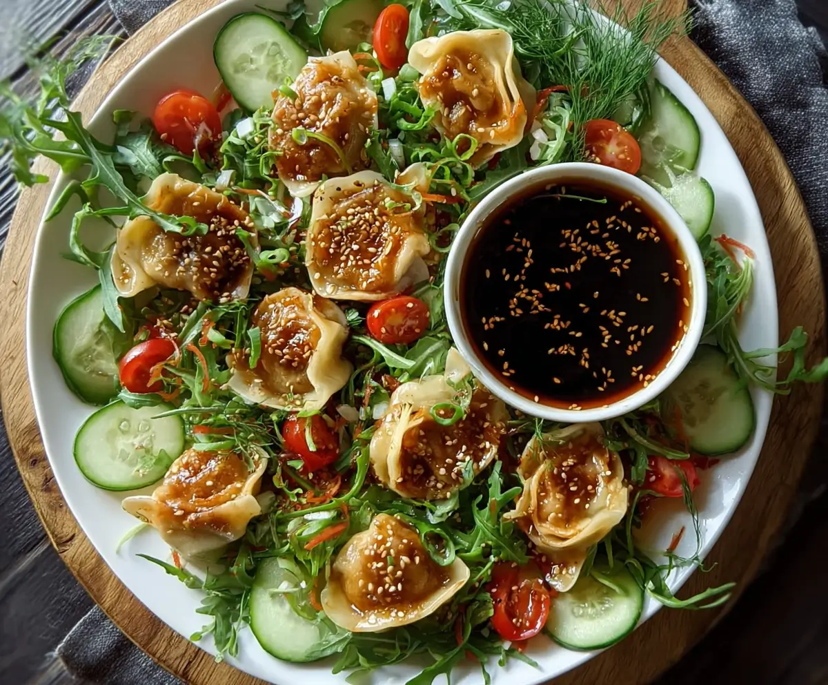 A refreshing and flavorful salad featuring crispy dumplings and a spicy soy dressing.
