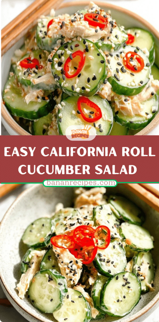 This Easy California Roll Cucumber Salad combines cucumber, imitation crab, avocado, and a creamy soy-sesame dressing for a fresh, crunchy, and flavorful snack or side.