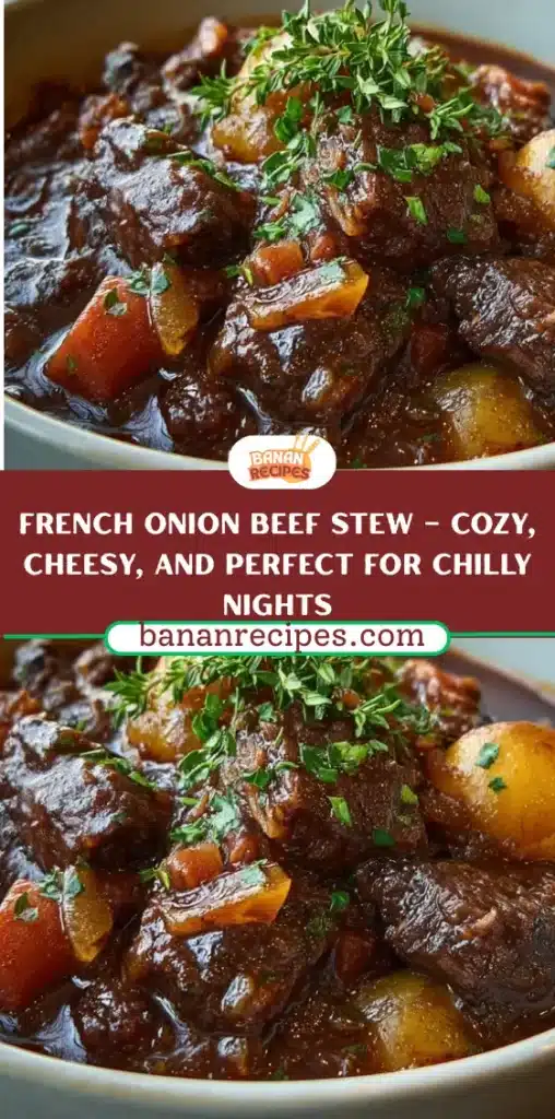 French Onion Beef Stew is a comforting and hearty meal that features caramelized onions, tender beef, and Gruyère cheese, perfect for chilly nights.