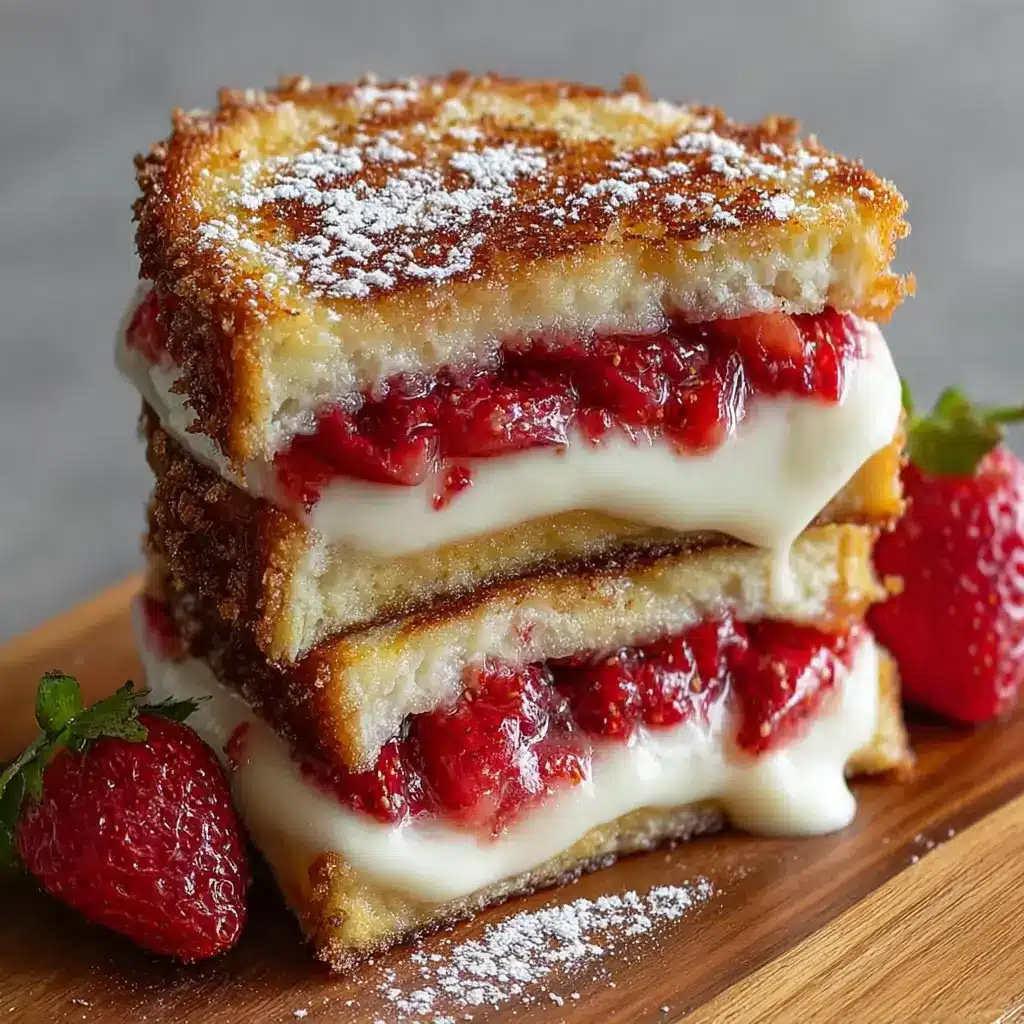 At their core, these sandwiches are about contrast. The outside is crisp and golden, lightly fried in butter until perfectly browned. Inside, the filling is smooth, creamy, and sweet, punctuated by the bright freshness of strawberries and the rich fruitiness of strawberry preserves.