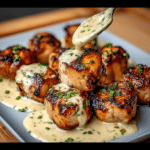 Grilled Chicken Bites with Creamy Garlic Sauce are juicy, bite-sized chicken pieces seasoned and grilled to perfection, then served with a rich, velvety garlic cream sauce.