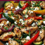 What makes this dish truly special is its balance. You get lean protein from chicken, heart-healthy fats from extra virgin olive oil, and a wide range of vitamins and antioxidants from vegetables like zucchini, bell peppers, tomatoes, and onions. The addition of Kalamata olives, sun-dried tomatoes, and feta cheese adds unmistakable Mediterranean character, creating layers of savory, salty, and tangy flavor in every bite.