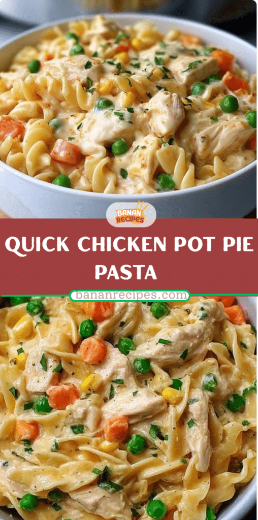 Delicious Quick Chicken Pot Pie Pasta recipe featuring tender chicken, vegetables, and egg noodles coated in a creamy, comforting sauce. A fast and satisfying meal perfect for busy weeknights.