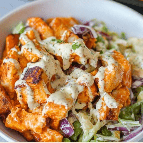 7. Assemble bowls and drizzle with extra buffalo sauce if desired.