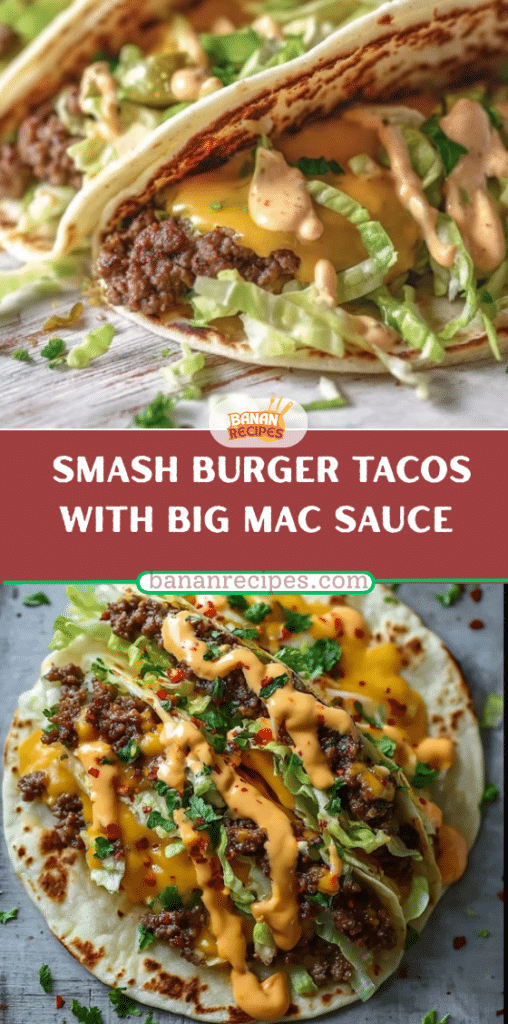Big Mac smashburger tacos with extra-smashed beef patties, melty American cheese, and homemade Big Mac sauce on warm flour tortillas.