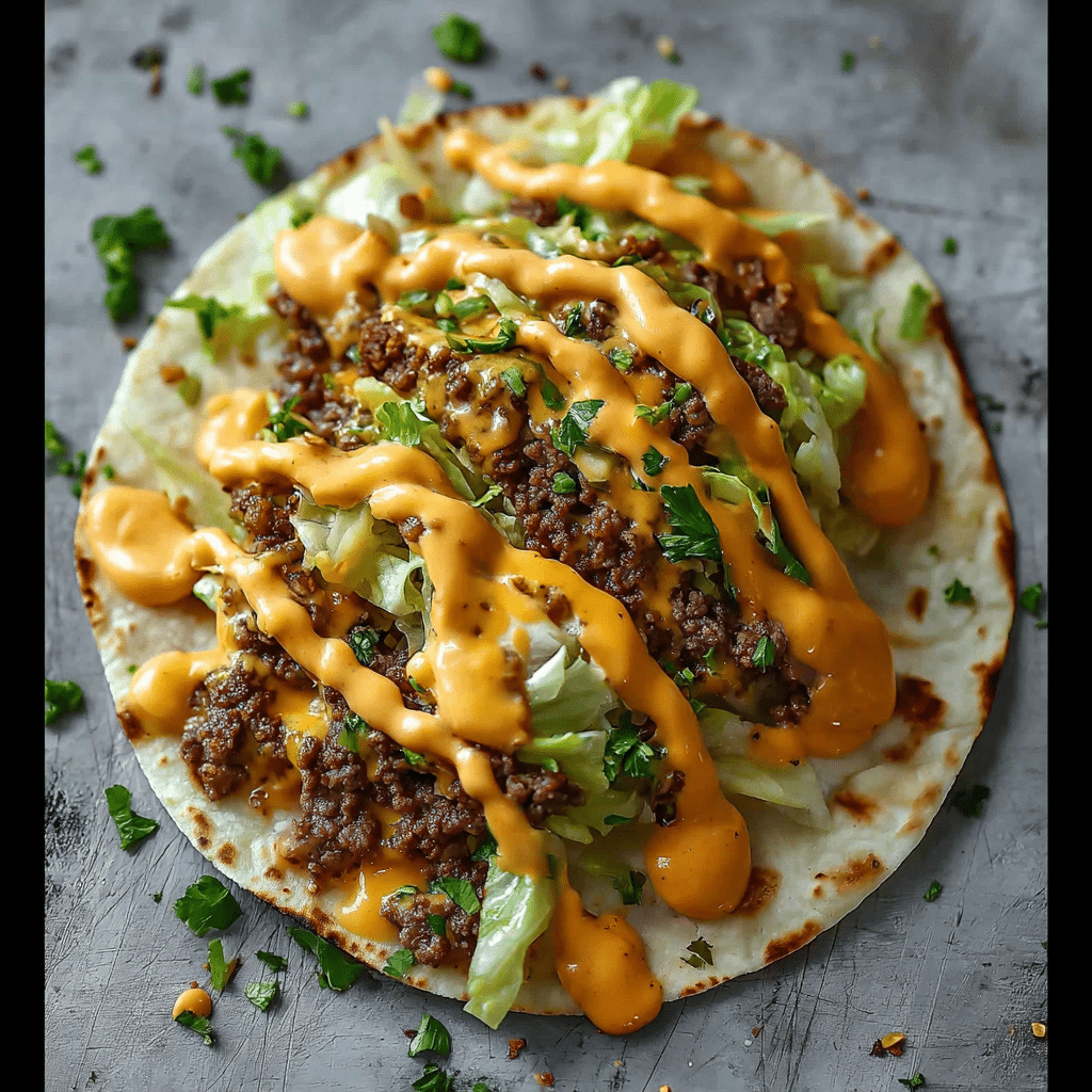 Each tortilla holds a crispy-edged smashed beef patty, a slice of American cheese, shredded lettuce, diced onions, dill pickles, and a homemade Big Mac sauce that ties all the flavors together. Perfect for lunch, dinner, or game-day snacks, these tacos are quick to make, packed with flavor, and guaranteed to delight burger lovers.