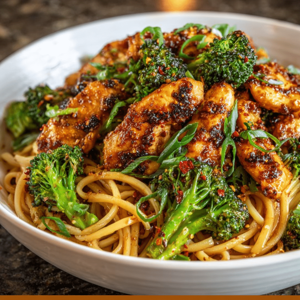 The Spicy Garlic Chicken and Broccoli Noodle Bowl is a quick, flavorful, and satisfying meal that balances protein, fiber, and carbs perfectly. Its bold, garlicky sauce, tender chicken, and crisp vegetables make it a versatile dish suitable for weeknight dinners, meal prep, or casual entertaining.