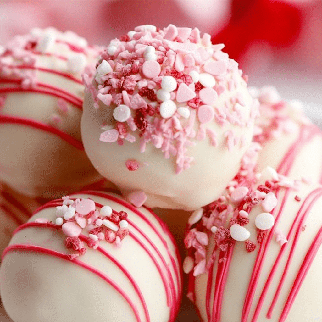 With white coating, pink drizzle, and optional sprinkles, these truffles are visually stunning. Presentation is crucial for desserts, and these deliver a professional appearance without complicated decoration techniques.