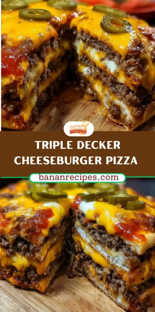 Triple Decker Cheeseburger Pizza with Stuffed Crust is the ultimate comfort-food fusion. It brings together the bold, familiar flavors of a classic cheeseburger with the irresistible appeal of layered pizza, finished with a cheese-stuffed crust and garlic butter topping.