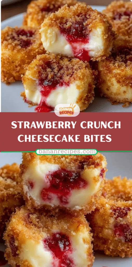Strawberry Crunch Cheesecake Bites are mini, creamy cheesecake treats topped with a buttery graham cracker crunch. Perfect for parties, picnics, or a quick sweet snack.